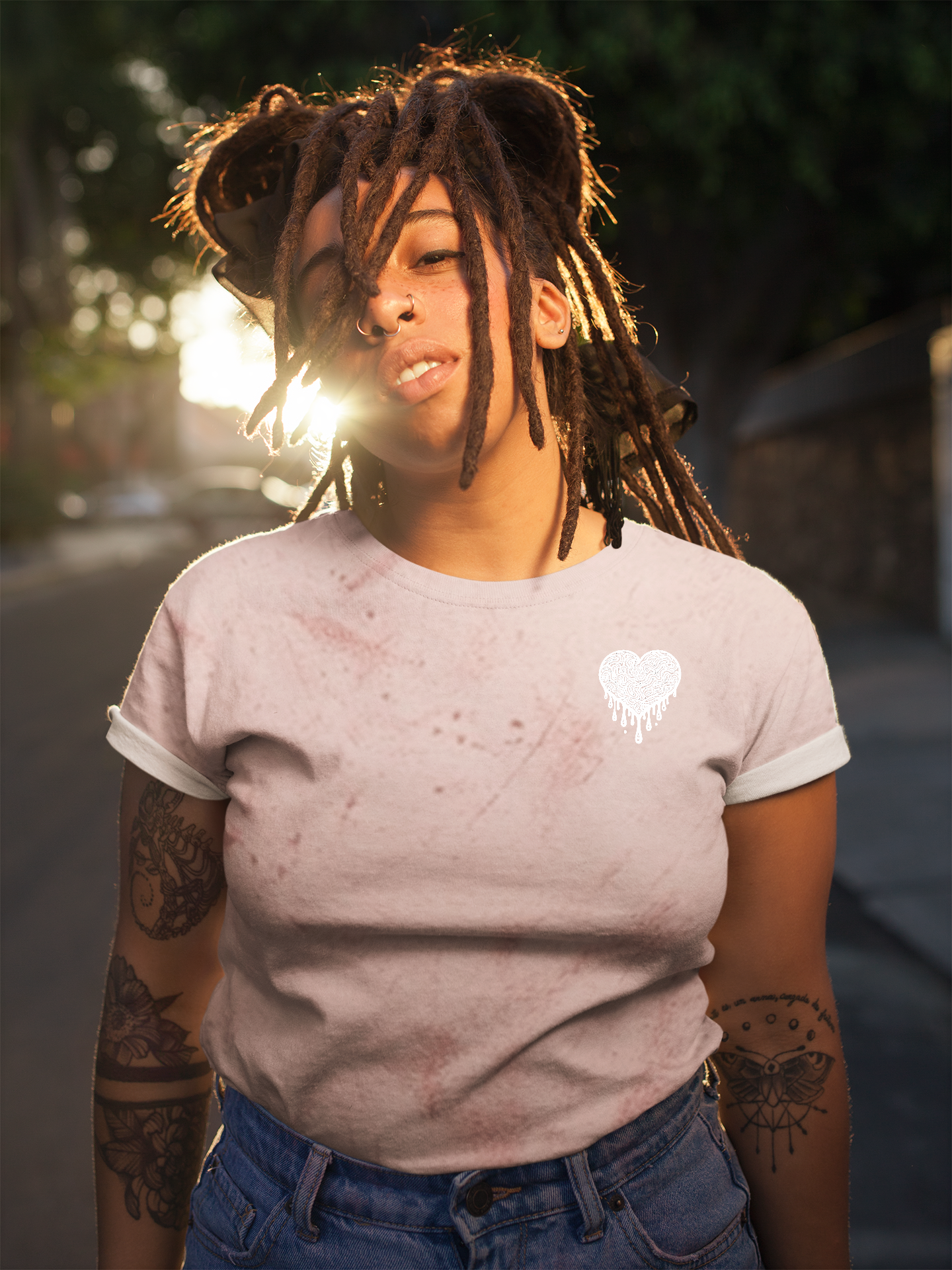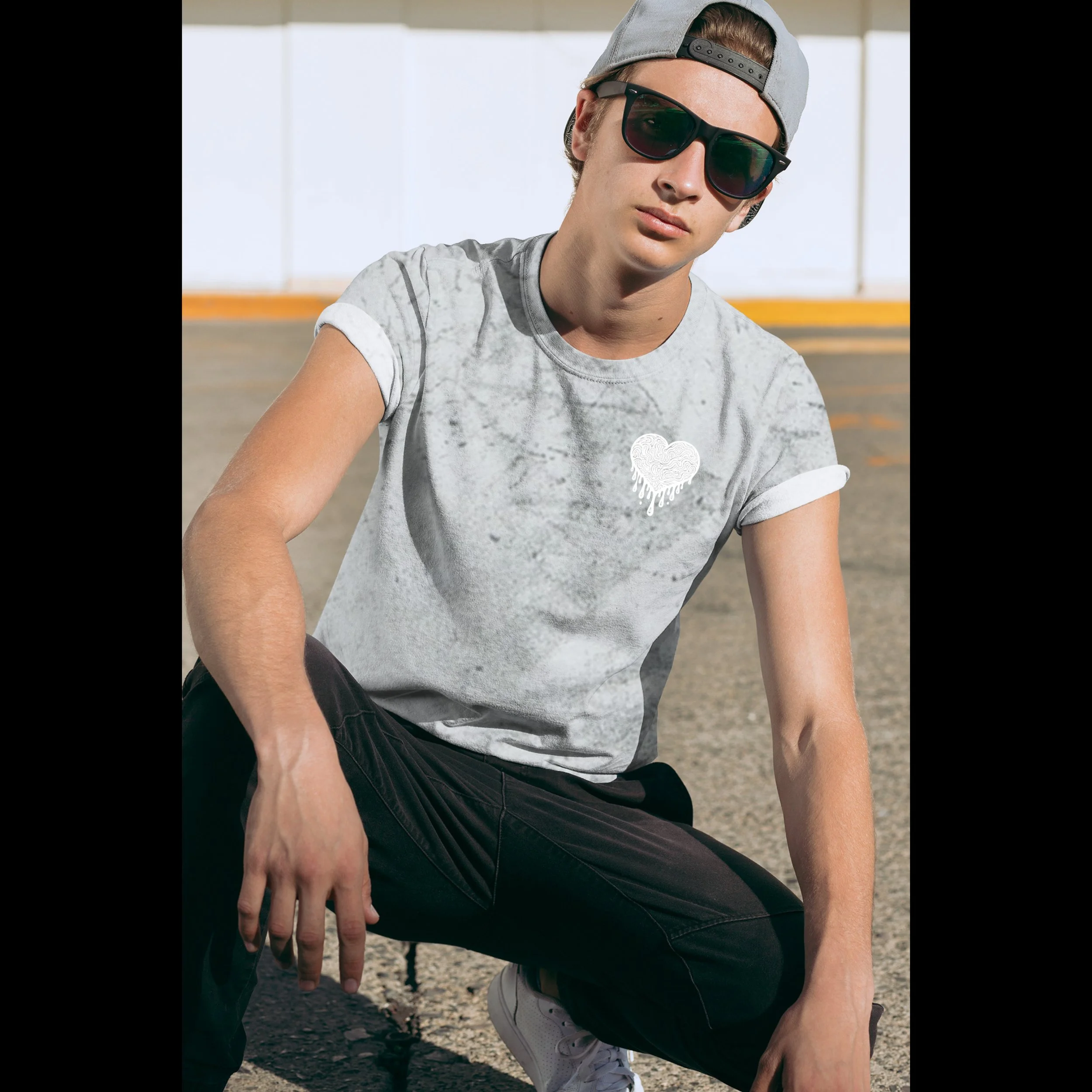 Designed with a raw, stone-washed texture and an all-over distressed aesthetic, the Live Free Statement Tee feels lived-in from the first wear. The front features a subtle white dripping heart over the chest — a symbol of love that isn’t polished or performative, but real. Turn around and the message speaks fully: LIVE FREE, anchored by Raw Rebel Talk’s core values — Spread Love and Think for Yourself — framed by symbolic elements representing growth, awareness, and breaking cycles.