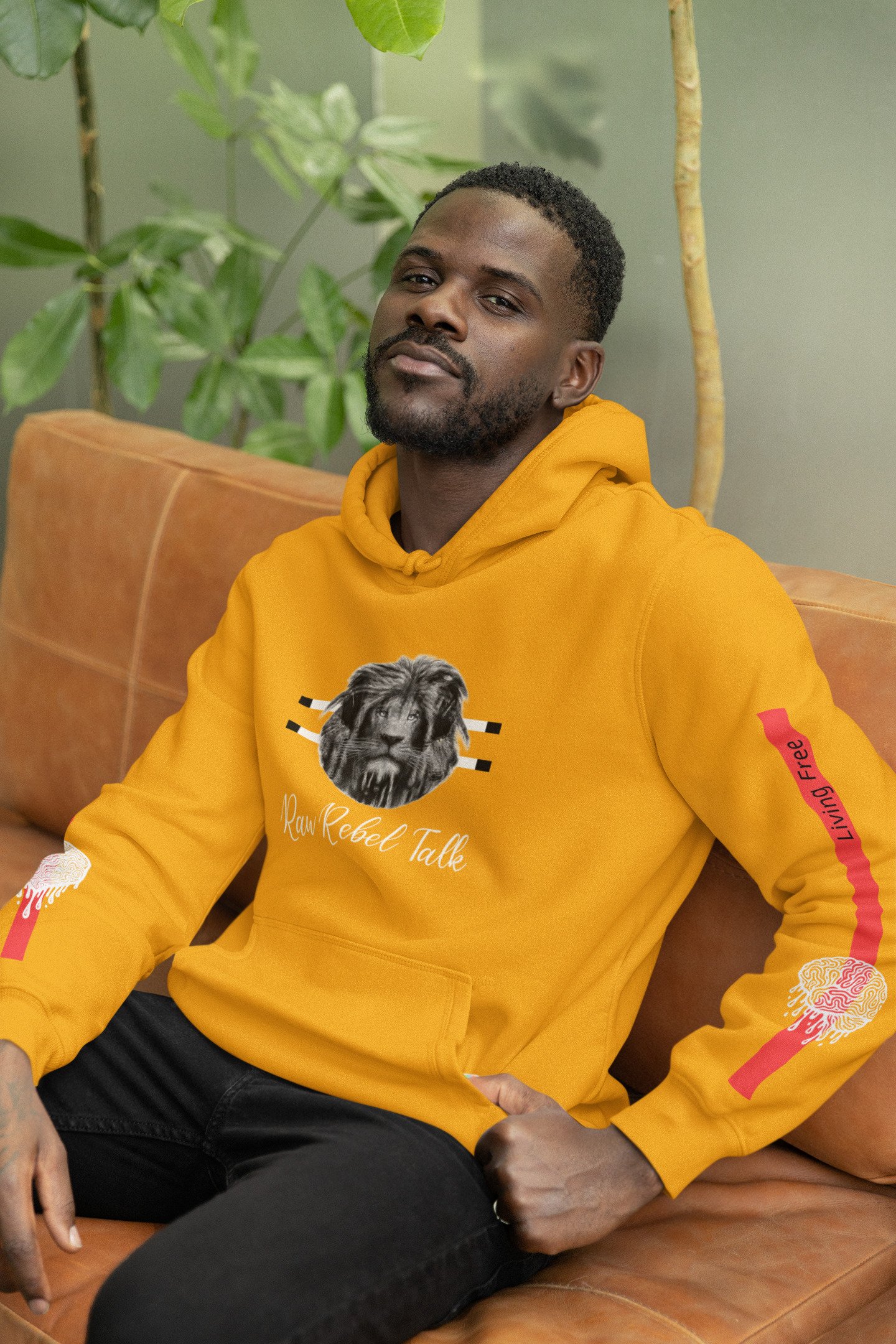 The Raw Rebel Talk Signature Hoodie is designed for those who lead from within and move through the world with purpose. Front and center, the lion emblem stands as a symbol of strength, clarity, and quiet authority — a reminder that true power doesn’t need to shout. Balanced with clean design details and bold sleeve accents, this piece speaks to freedom as a mindset, not a trend.
